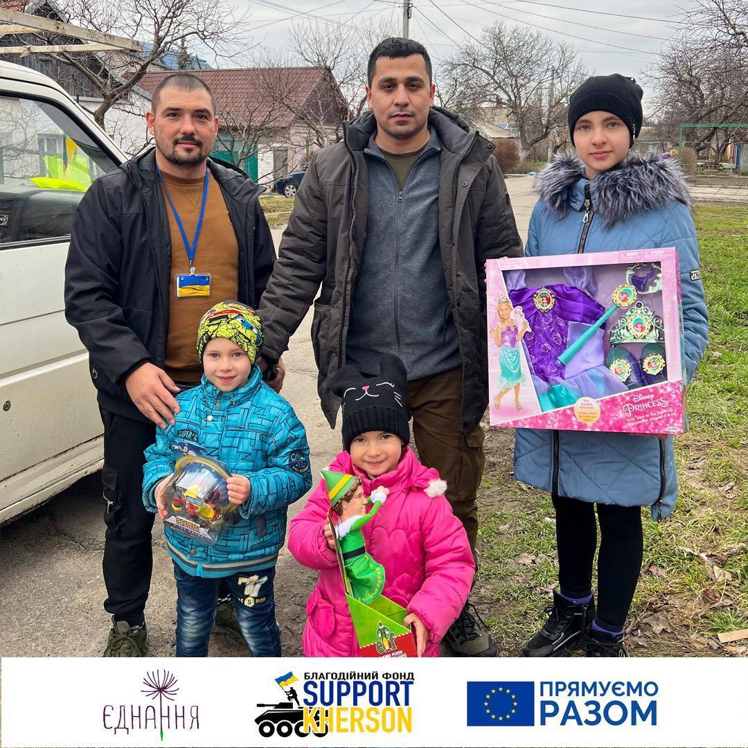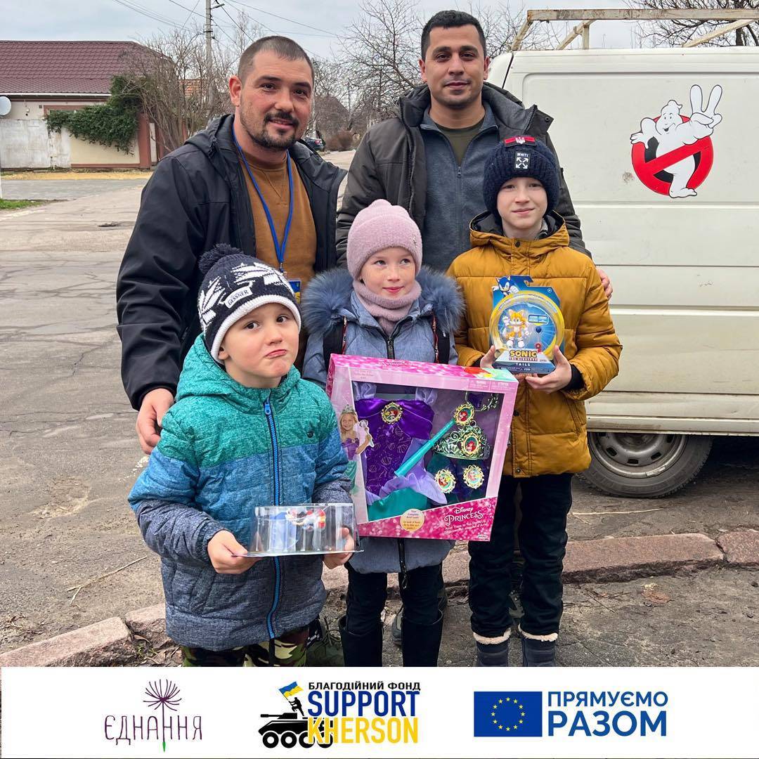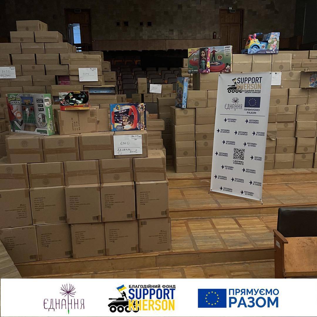 Тож на цьому тижні наша команда Благодійного фонду «Support Kherson» привезла велику кількість іграшок для наших маленьких Херсонців, щоб підвищити їм настрій в такий важкий час. Діти є діти, тому ми зобов’язані подарувати їм відчуття свята та казки попри все! ✨